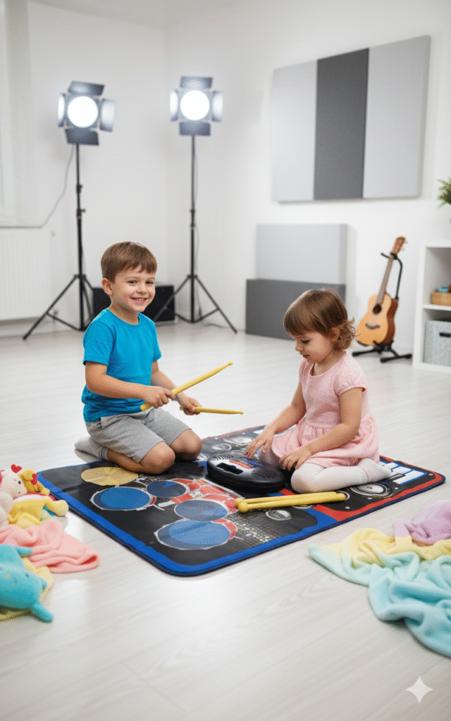 2-in-1 Musical Floor Playmat or Kids Electronic Piano and Drum Mat