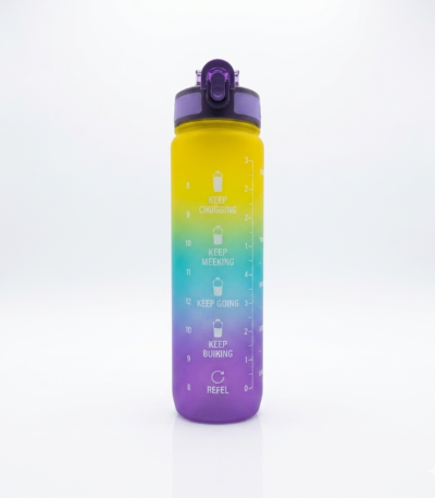Stay hydrated and hit your daily wellness goals with the AuraMist Gradient Water Bottle. Designed for those who thrive on