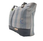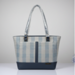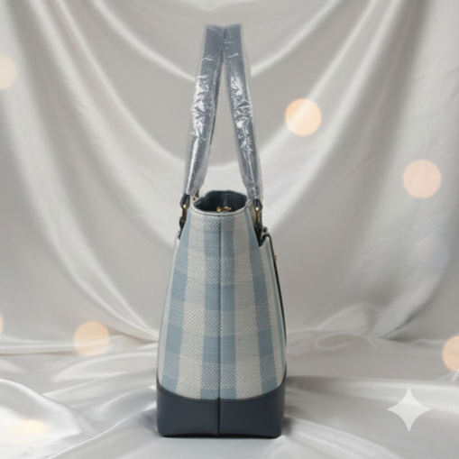 This spacious and stylish blue and white checkered tote bag is the perfect everyday handbag for shopping, work, or casual outings.