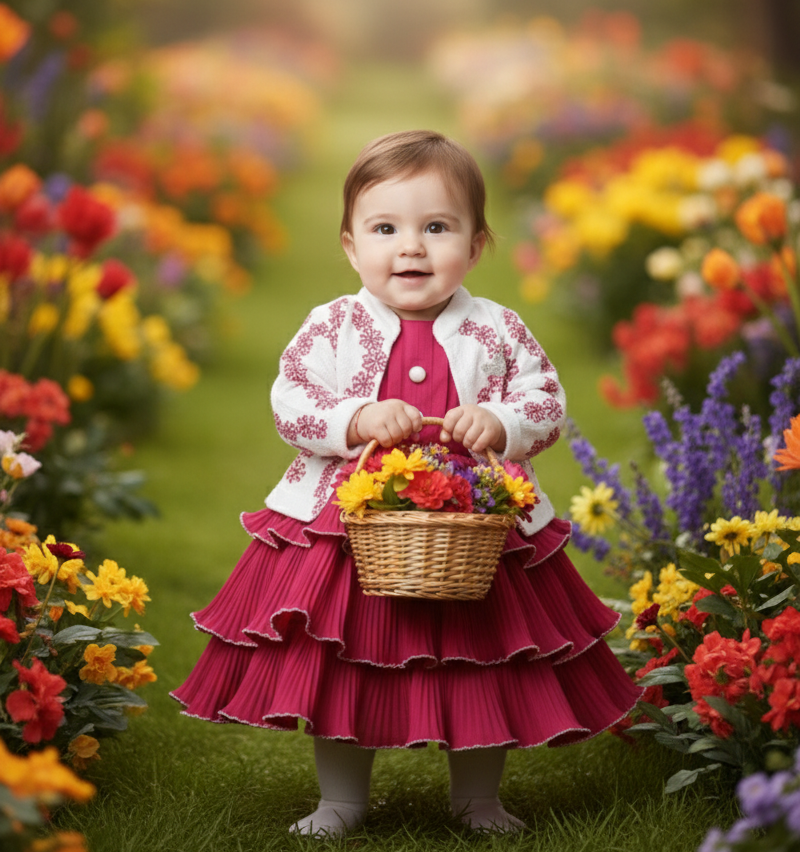 This comfortable, bright, and stylish outfit is perfect for occasions that require a sophisticated ensemble, such as birthday parties, weddings (as a guest or flower girl), festive family gatherings, and photoshoots.