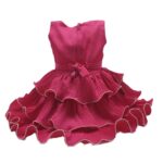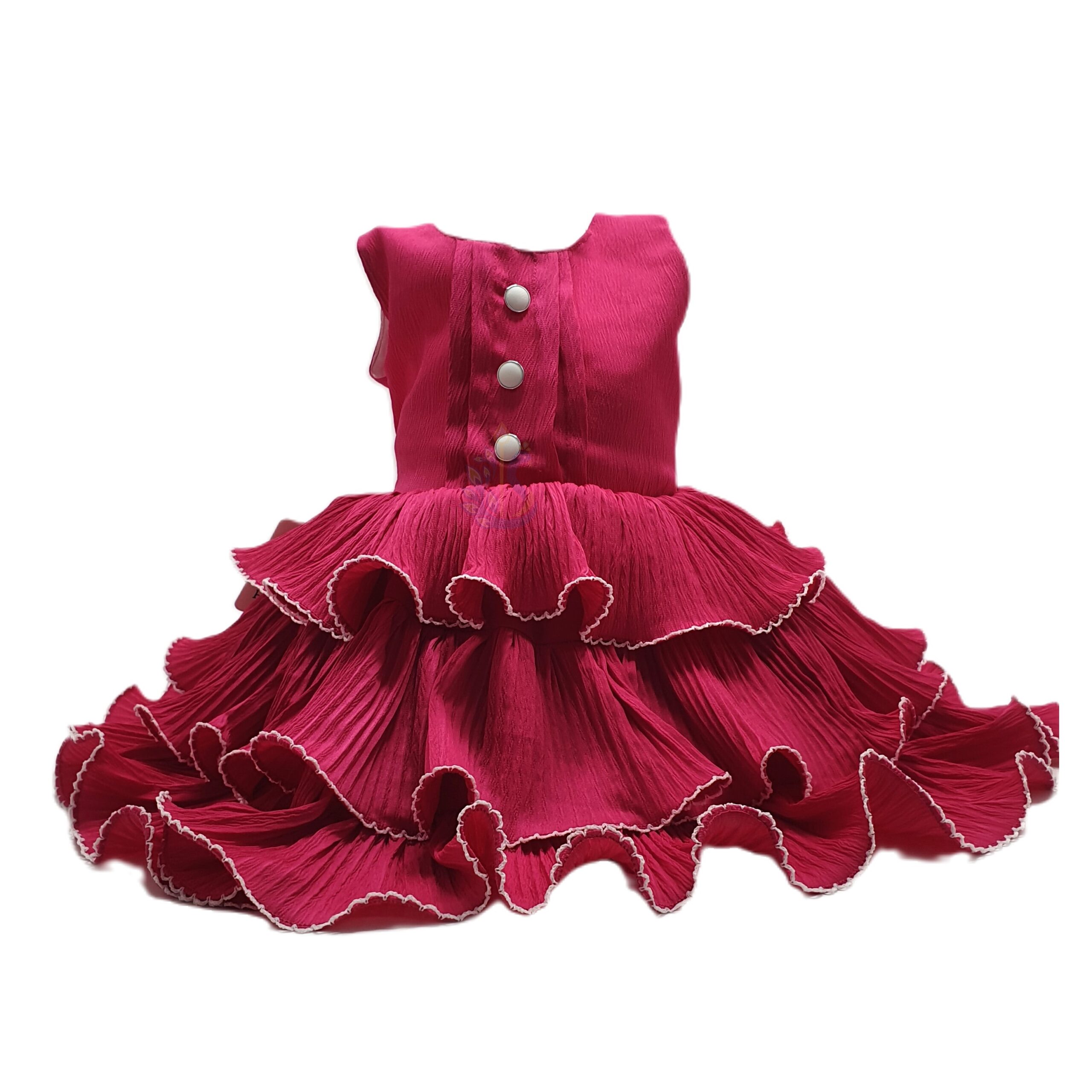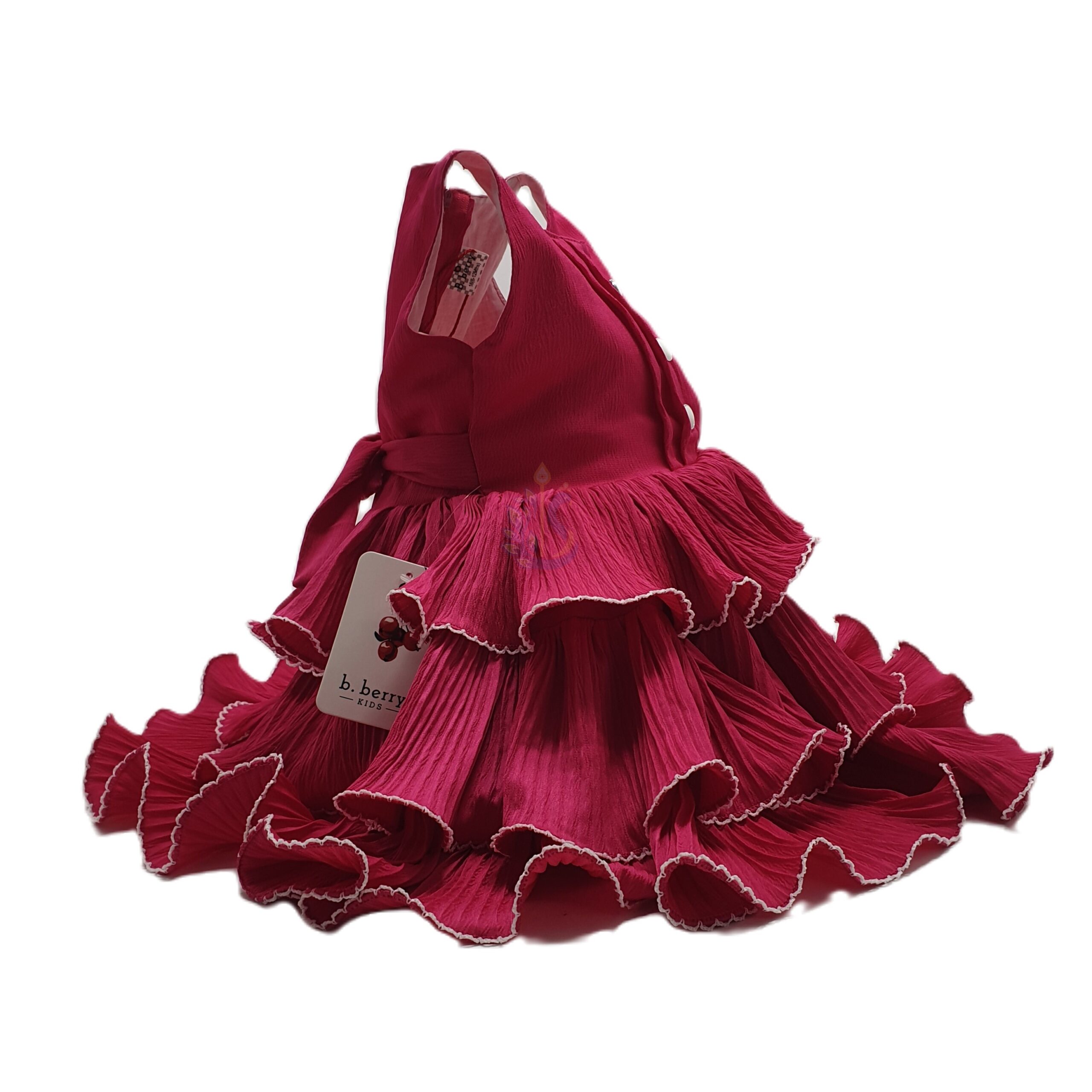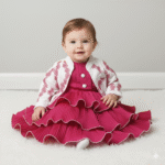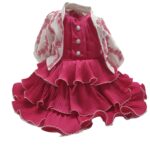 This beautiful 2-piece ensemble features a vibrant pink tiered ruffle dress with a soft, voluminous skirt that’s perfect for twirling.