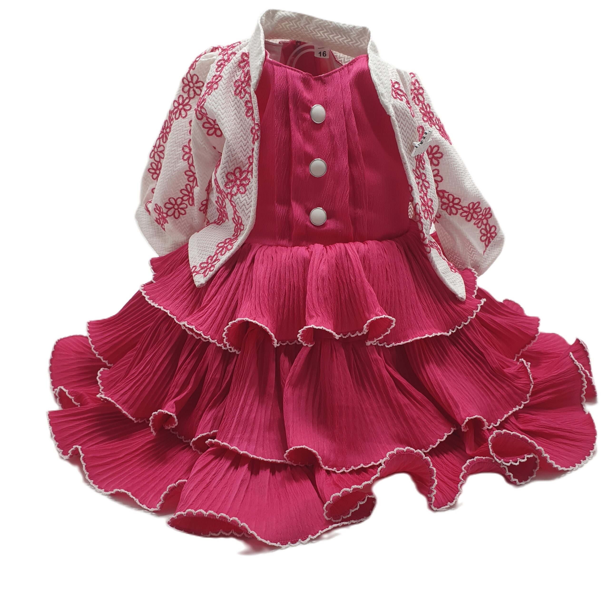 Baby Girl Pink Ruffled Tiered Dress & Floral Embroidered Bolero Cardigan Set