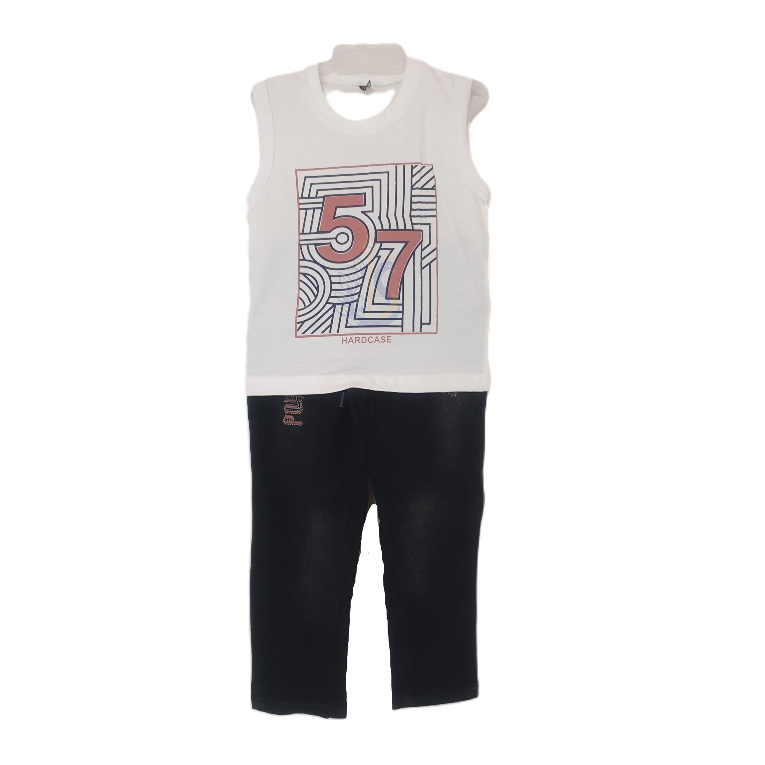 - Â This stylish and comfortable three-piece set for boys features a full-sleeve with a bold “FAST TRACK” logo comes with a perfect sleeveless white printed tshirt, paired with matching solid-colored jogger pants.