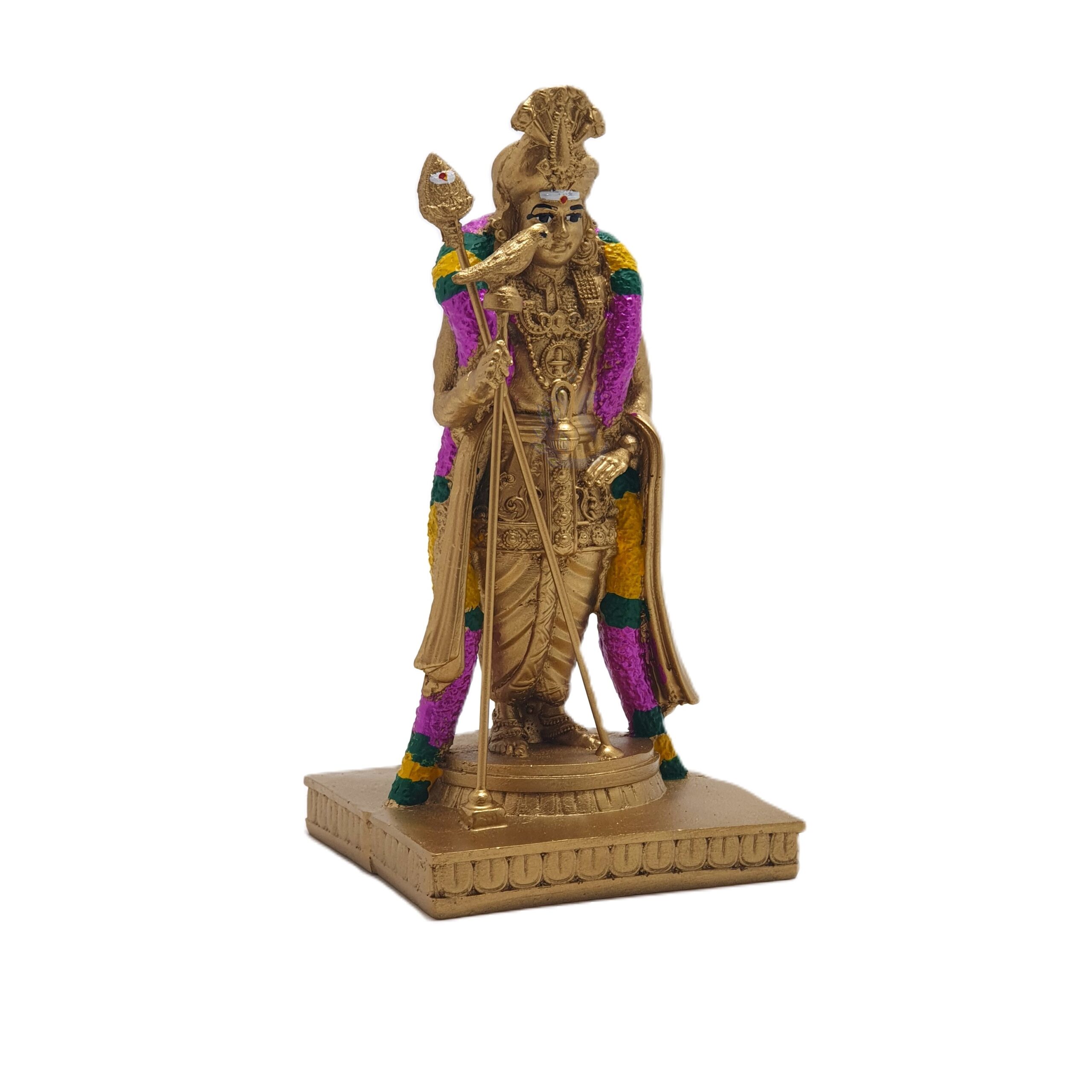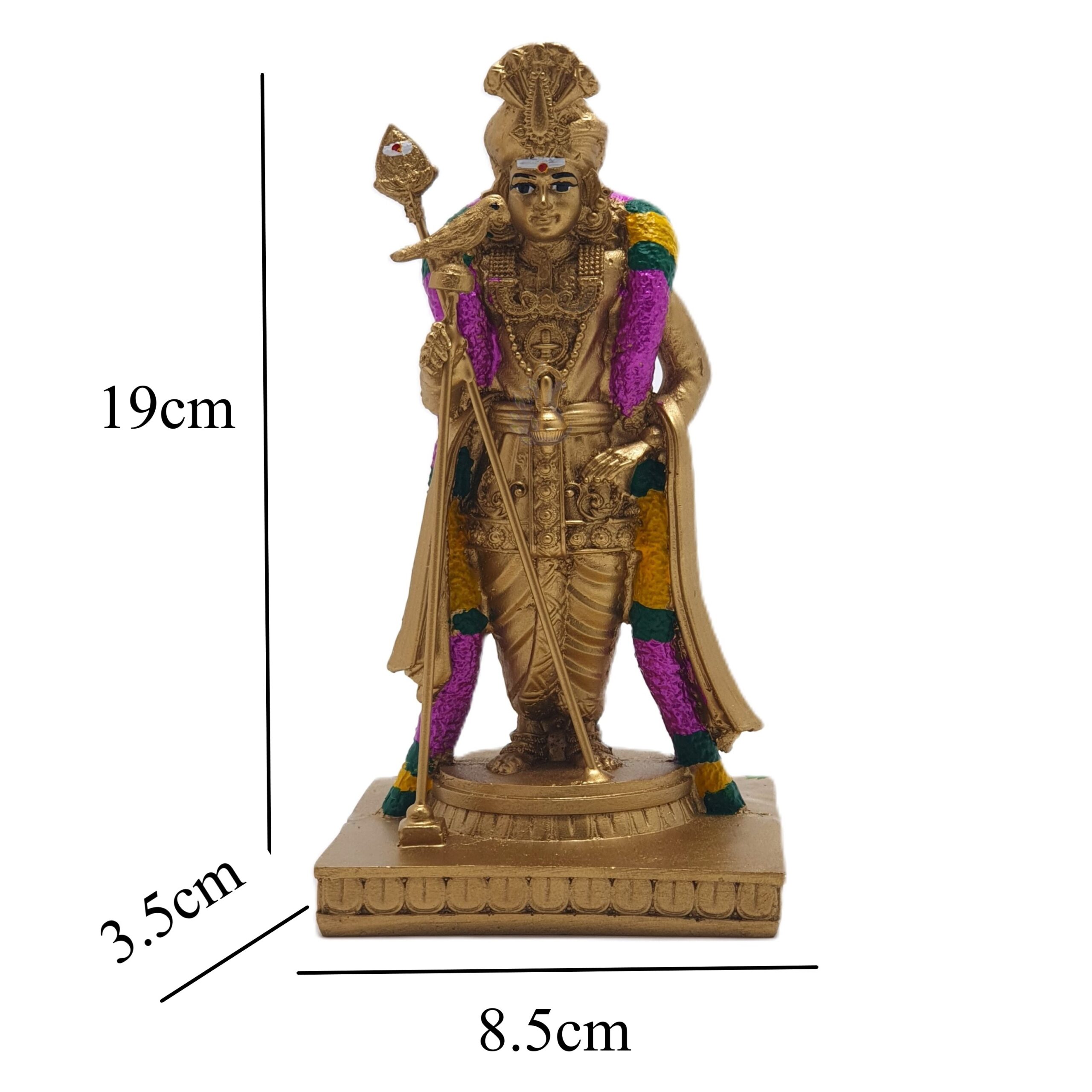 Featuring an intricate design and a majestic Golden Finish, this Murugan Murti is ideal for your Home Temple (Pooja Room), altar, or as an elegant piece of Hindu decor.