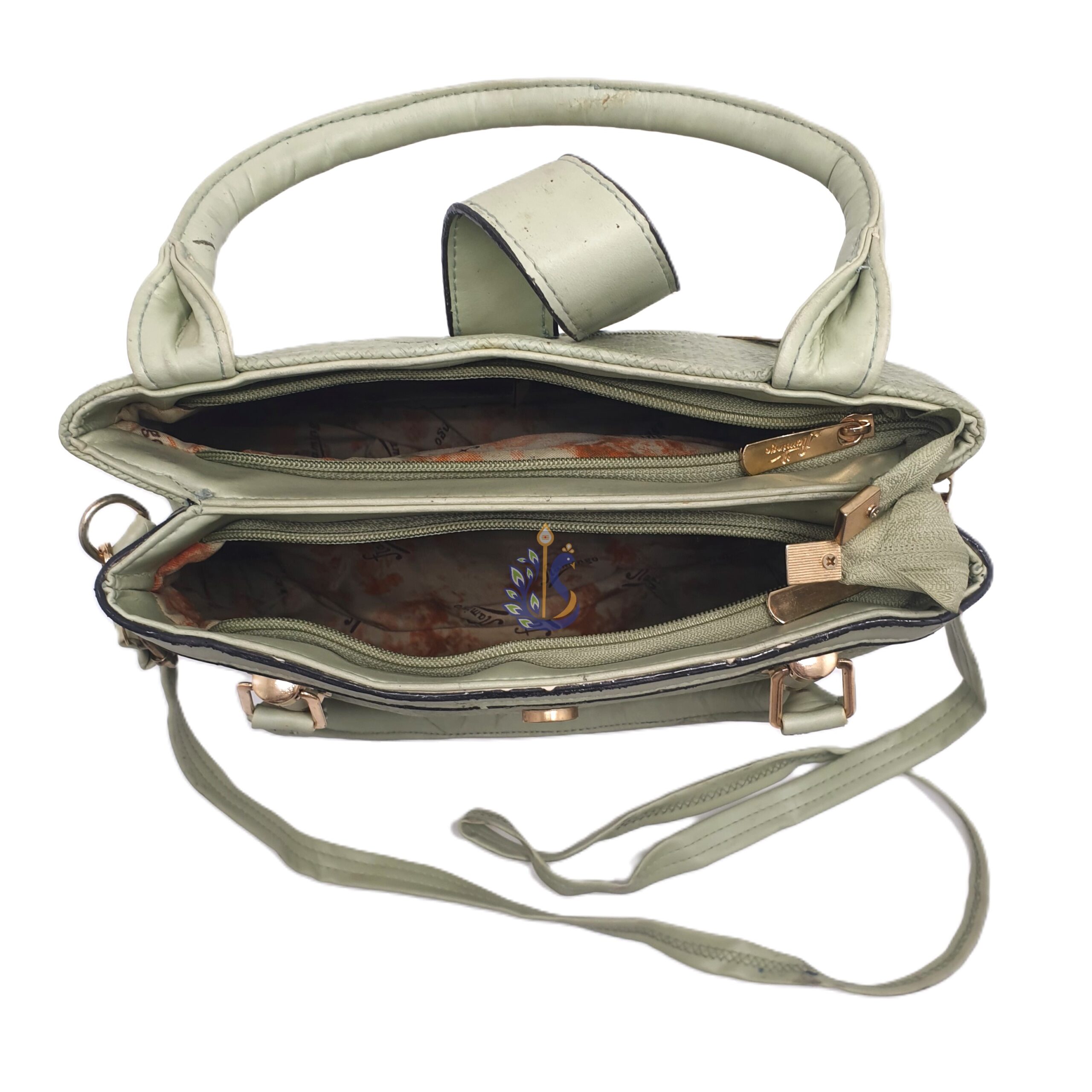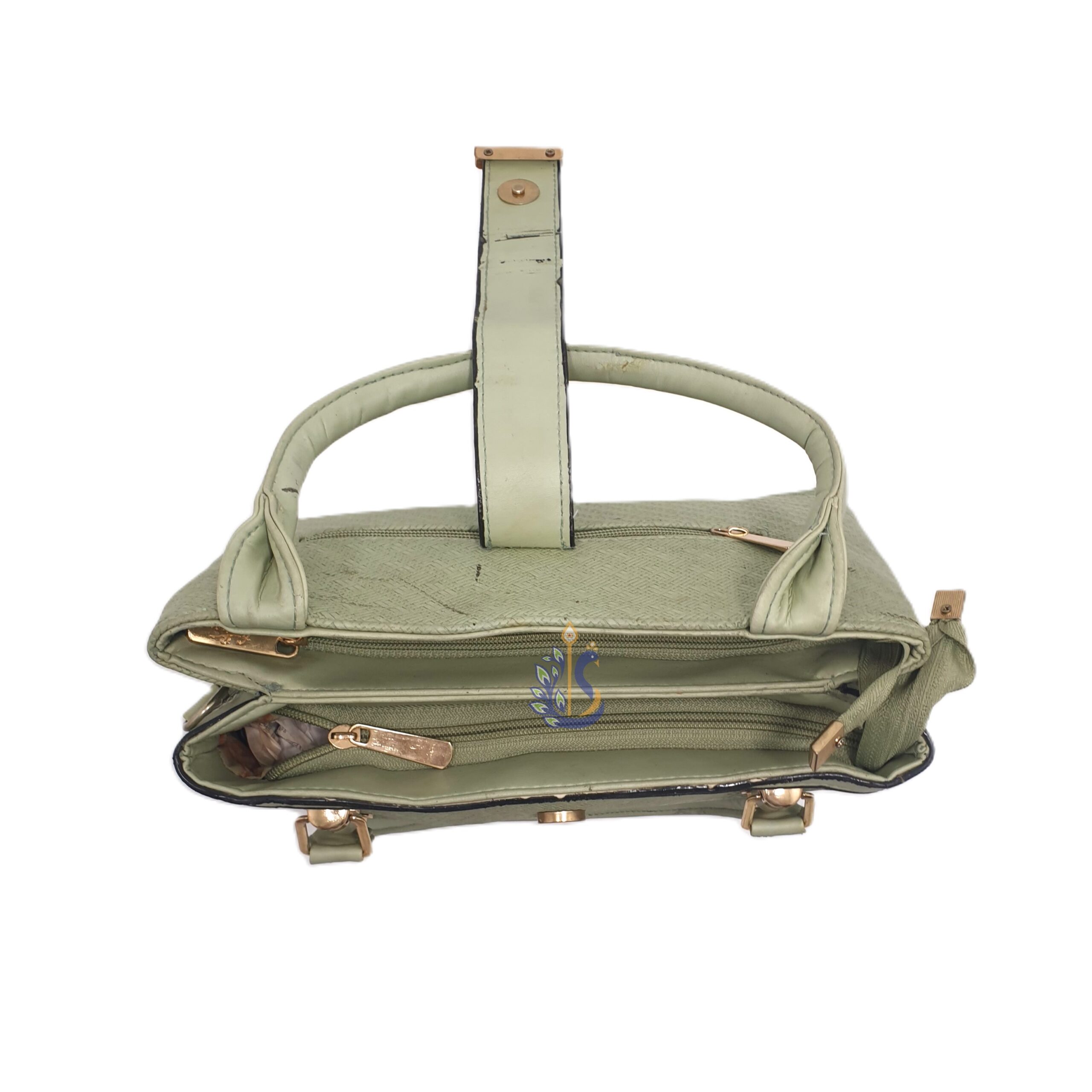 Elegant Sage Green Structured Faux Leather Handbag & Crossbody Bag