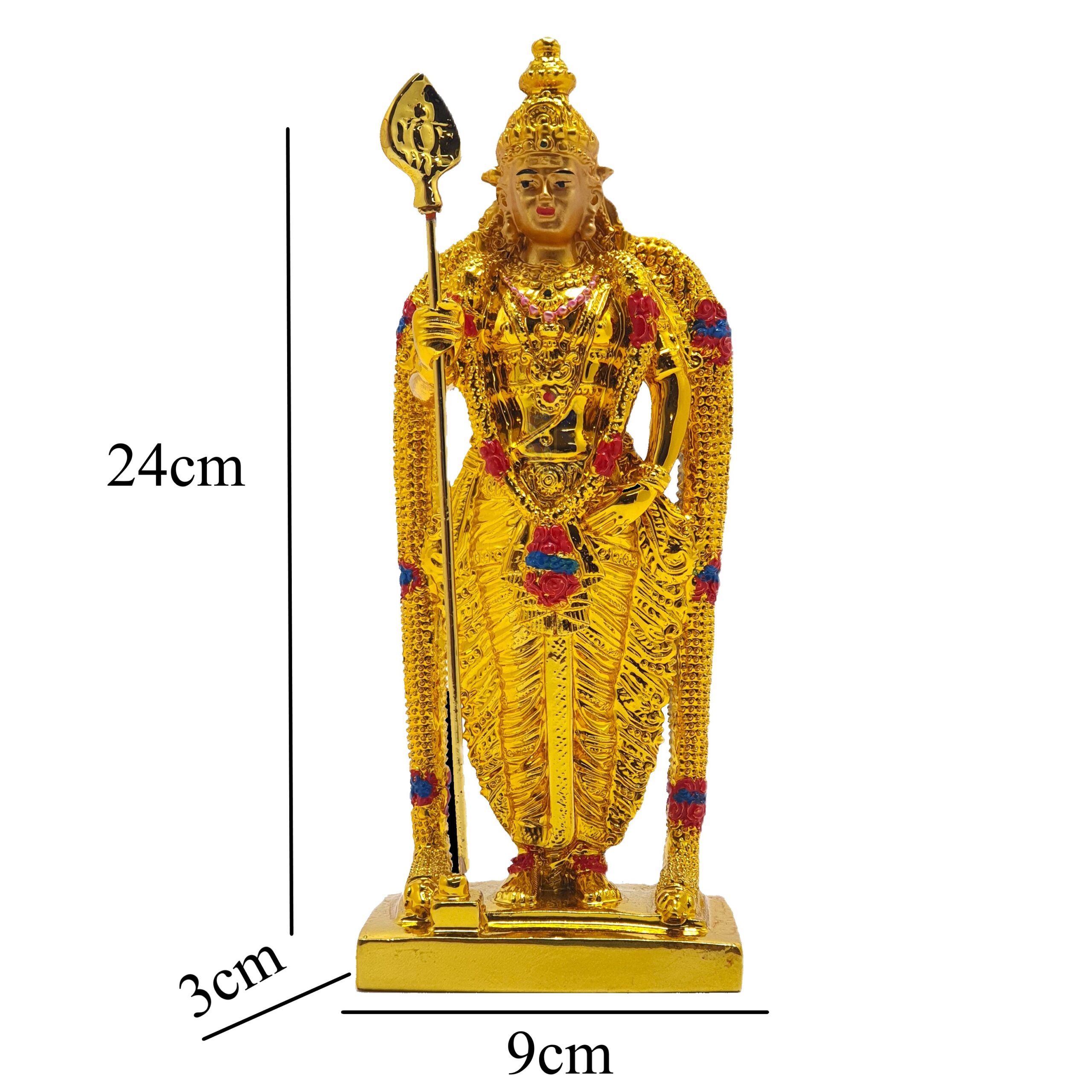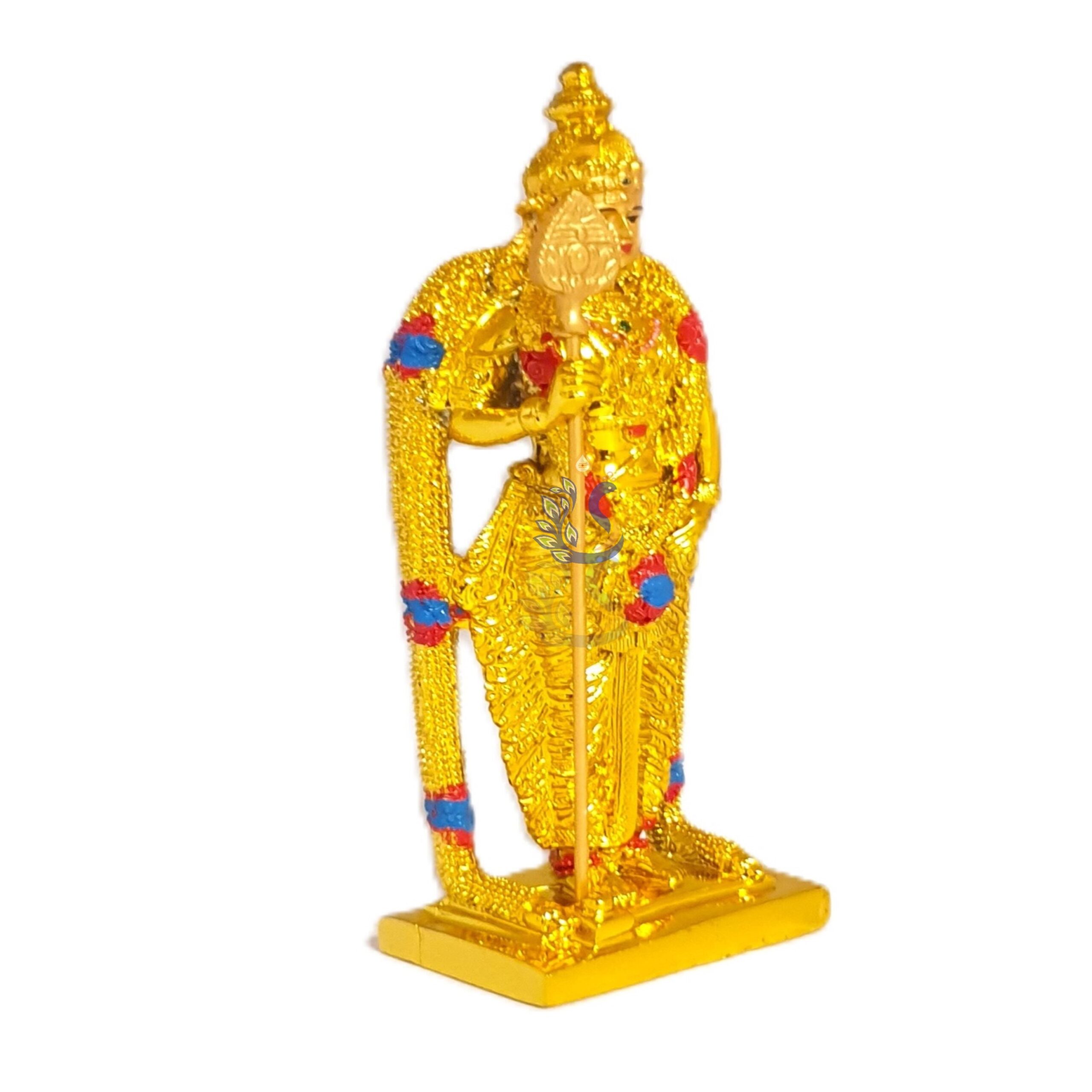 Invite the energy of courage, wisdom, and victory into your home with this magnificent Gold Plated Lord Murugan (Karthikeya) Brass Statue.