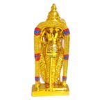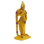 The durable brass core is finished with a stunning gold plating, highlighting the intricate details of his divine attire, peacock feather ornament, and regal posture.