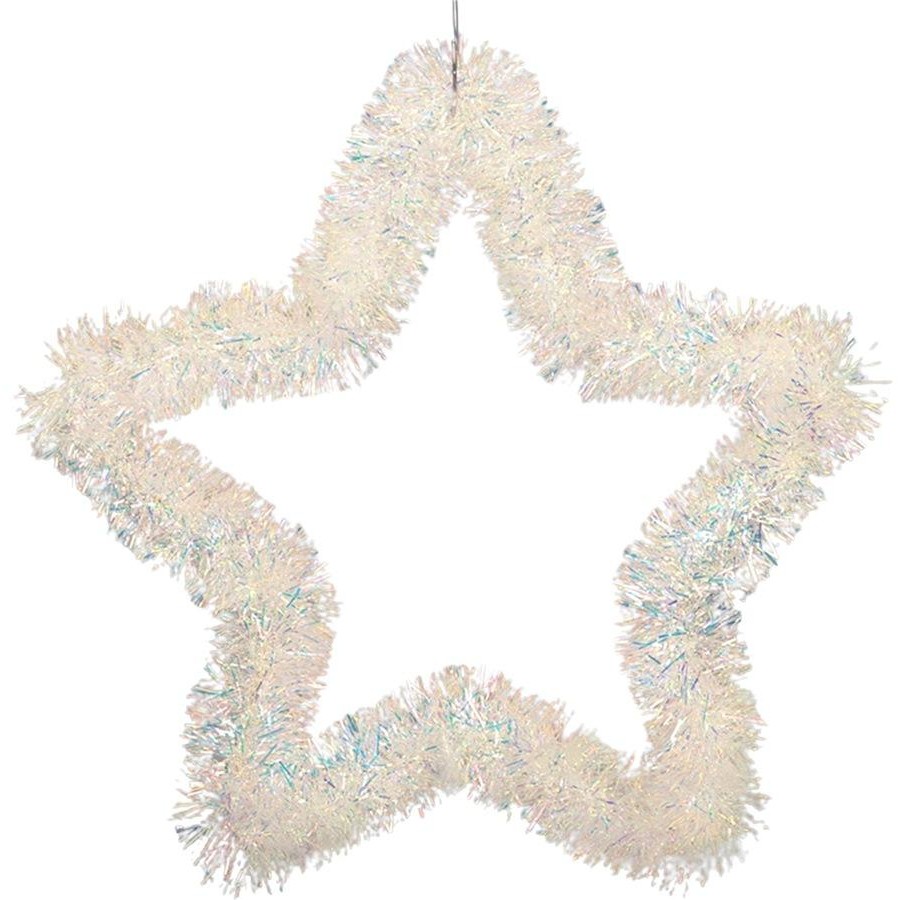 Fluffy White Tinsel Star Christmas Wreath Decoration