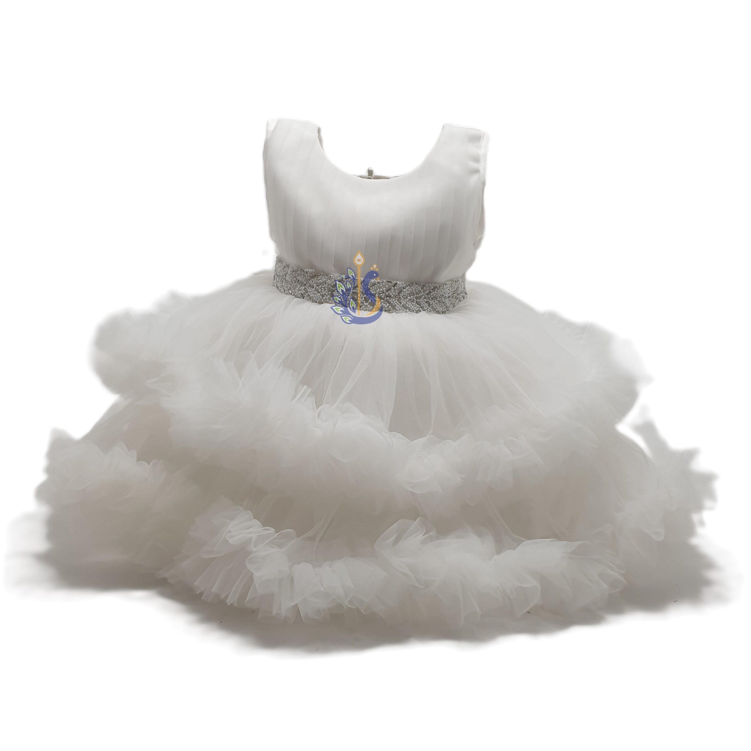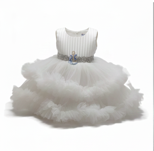 Fluffy White Tulle Baby Girl Dress – Christening, Baptism, 1st Birthday Party Gown