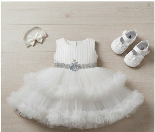 This exquisite white baby girl dress is the perfect choice for any special occasion.