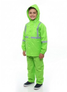Lightweight and easy to put on over regular clothing, this reflective safety gear is perfect for walking to school, cycling, camping, or any adventurous outdoor play on rainy days.