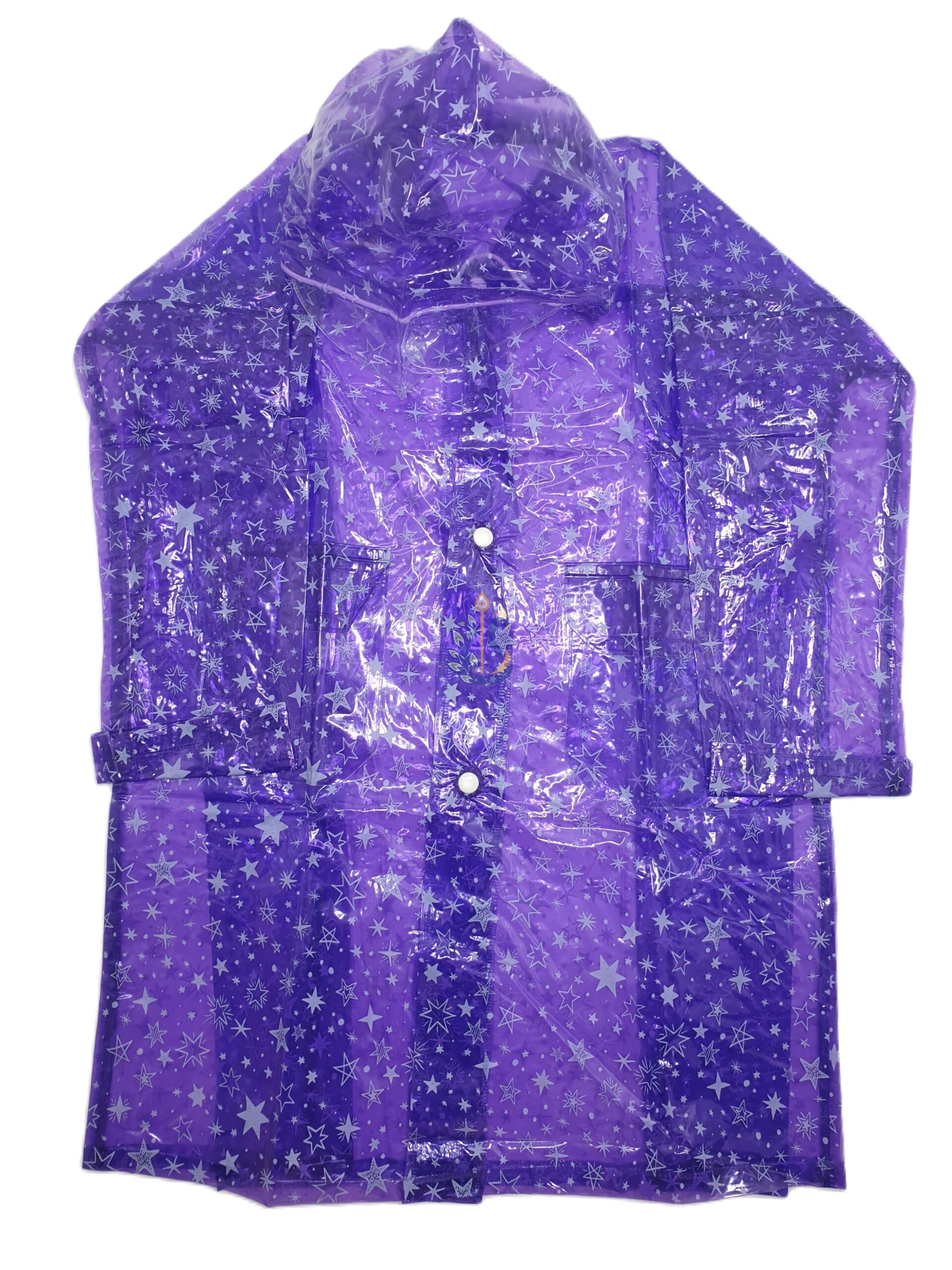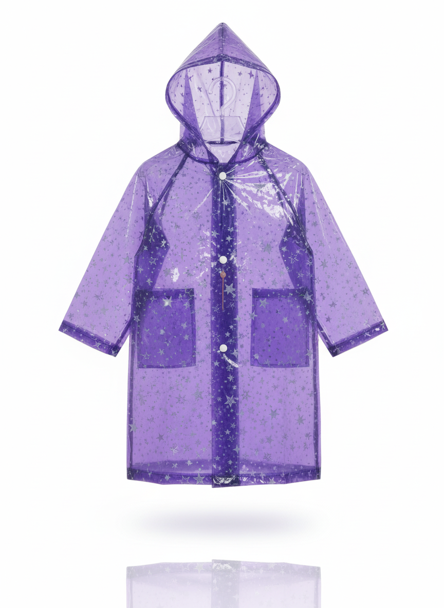 Keep your child dry and stylish with this Kids’ Purple Transparent Hooded Raincoat.