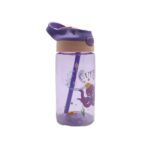 The bottle has a light purple screw-on lid with a darker purple flip-top mouthpiece and a matching purple straw inside for easy drinking.