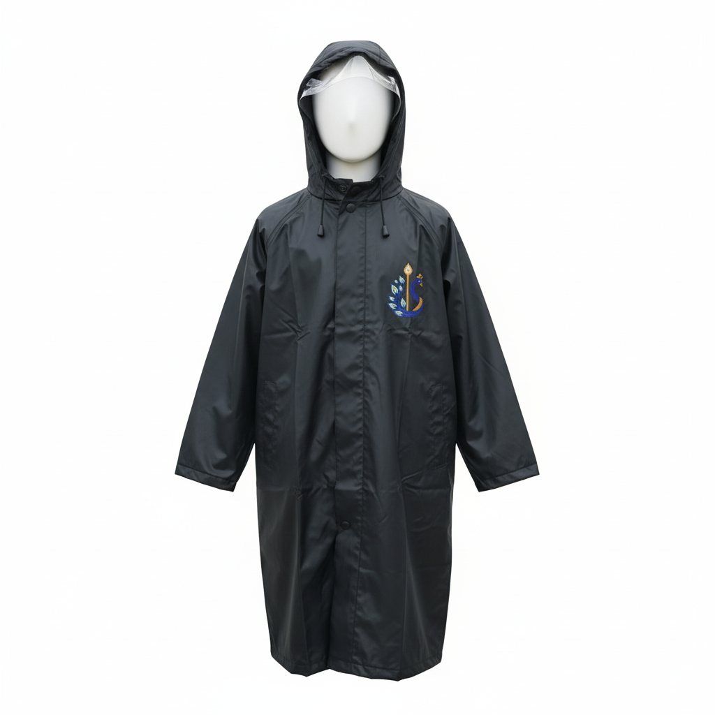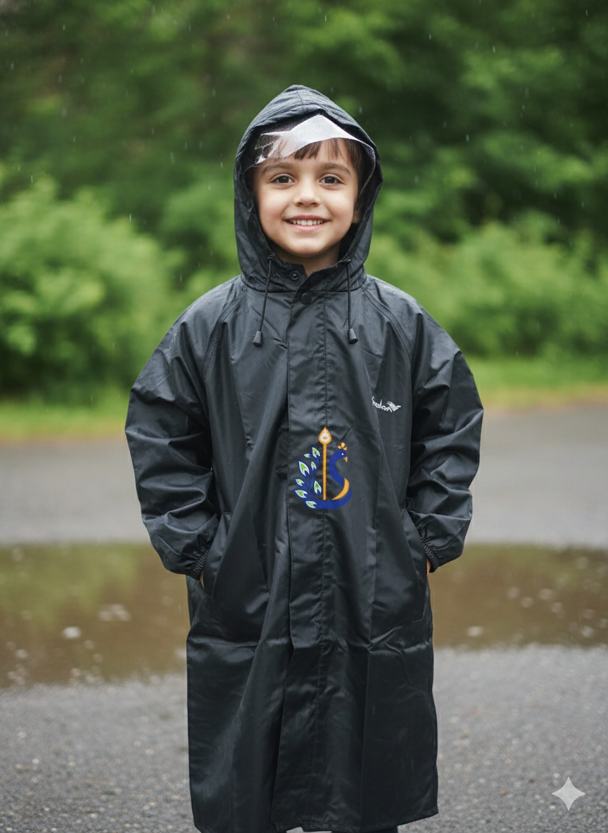 Designed for both boys and girls, this black, full-coverage coat is perfect for the monsoon season and outdoor adventures.