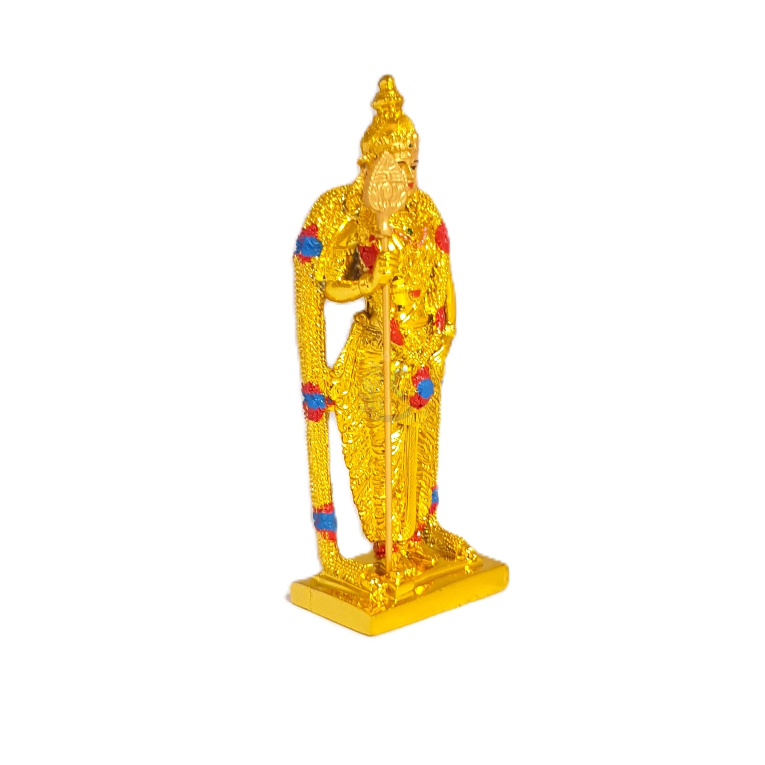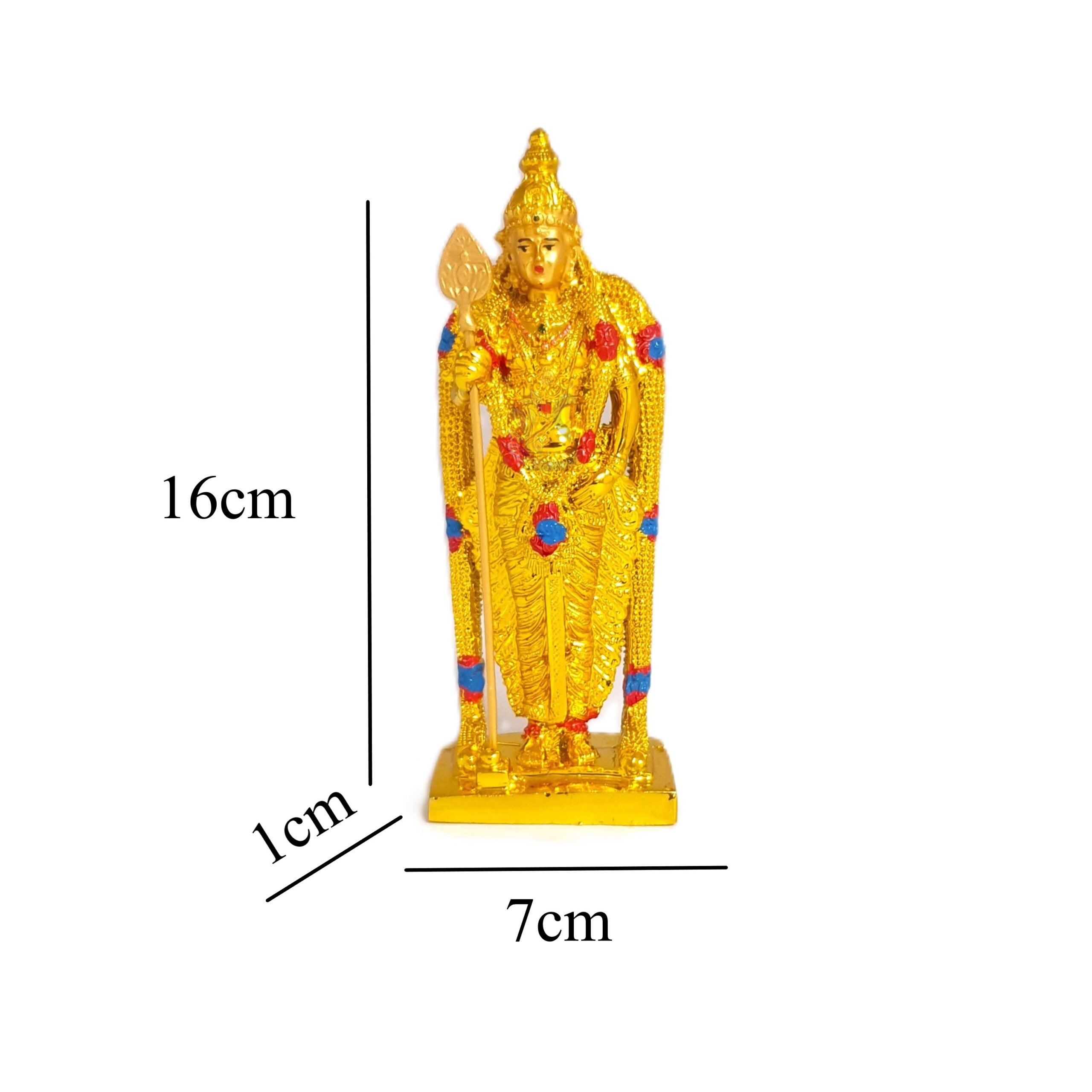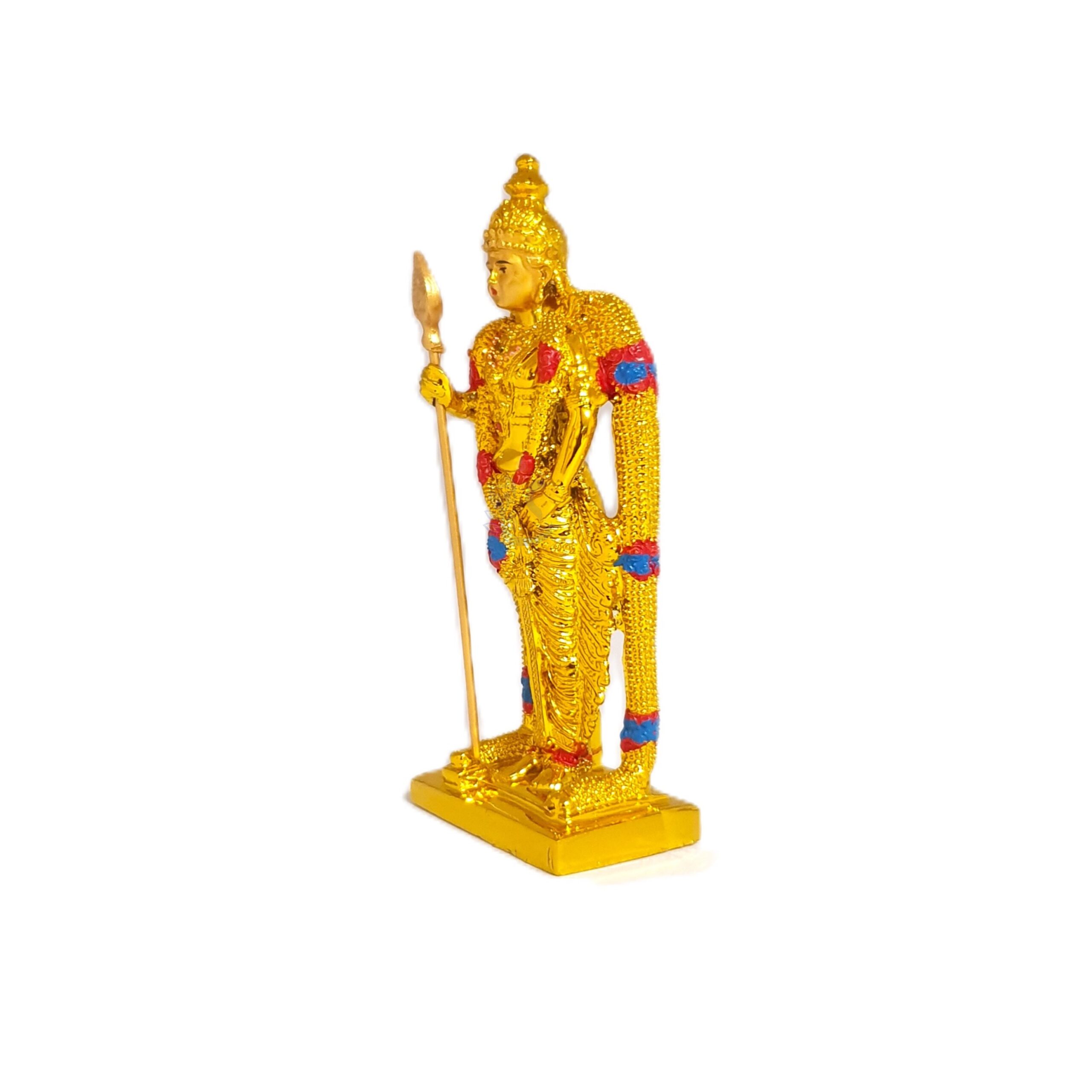 This is a decorative or devotional statue of Lord Murugan, a prominent Hindu deity revered as the God of War, victory, wisdom, and protection, particularly in South India.
