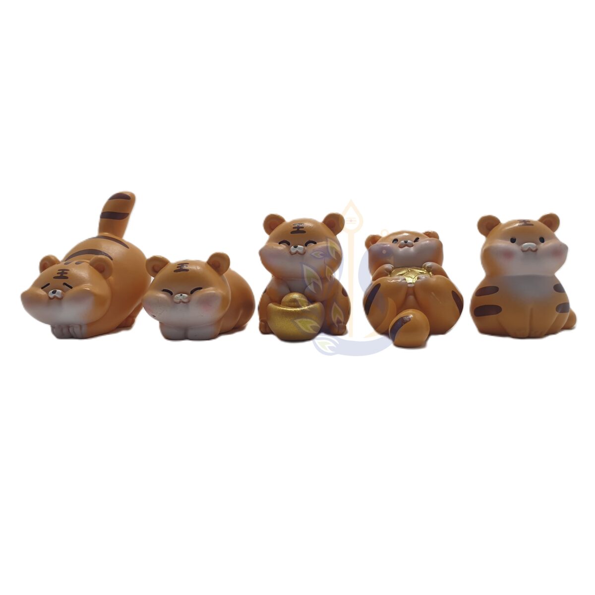 This delightful set features five miniature tiger figurines, each showcasing a unique pose and charming expression.