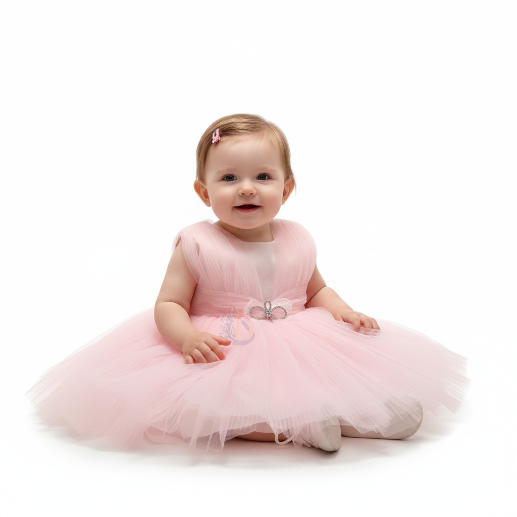 A stunning and fluffy baby pink tulle party dress that creates a perfect princess look for your little one’s special occasions.