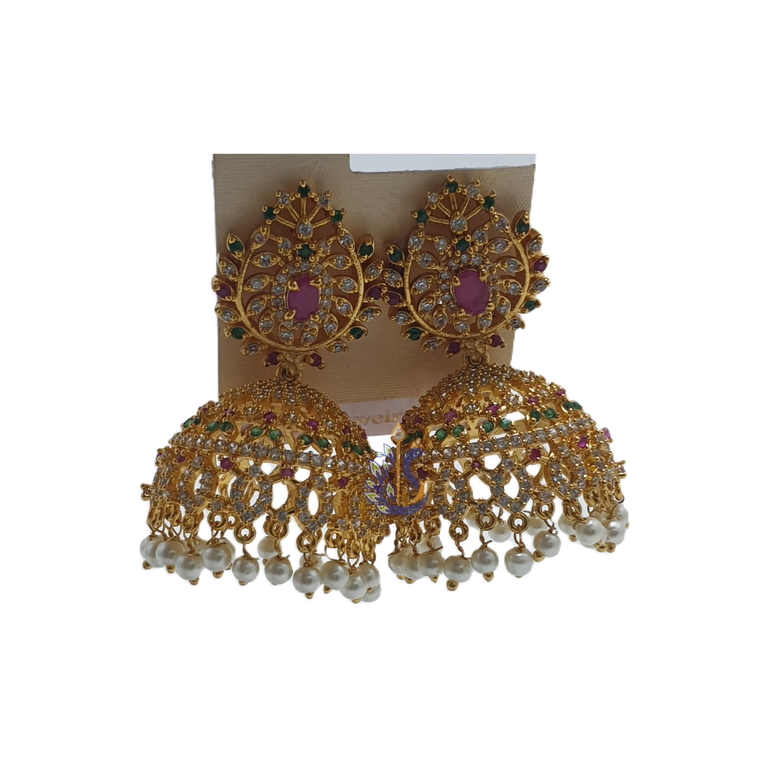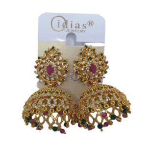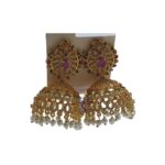 Be the first to review “Traditional Gold Plated Kemp Stone Jhumka Earrings with Pearl Drops” Cancel reply