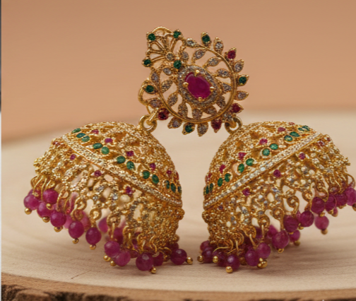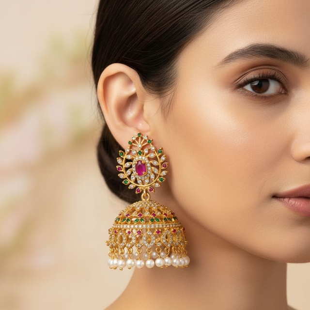 The classic Traditional Jhumka style and detailed craftsmanship make them a perfect accessory for weddings, festive occasions, and traditional gatherings.