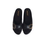 Be the first to review “Women’s Stylish Black Flat Sandals with Gold Buckle Detail” Cancel reply